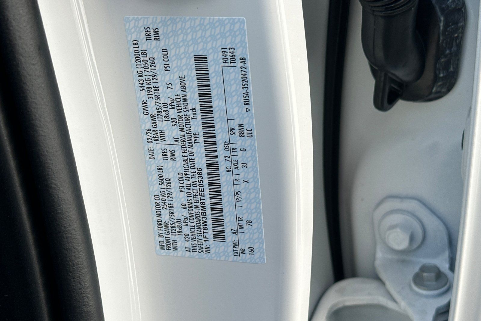 VIN: 1FT8W3BM8TEE05386